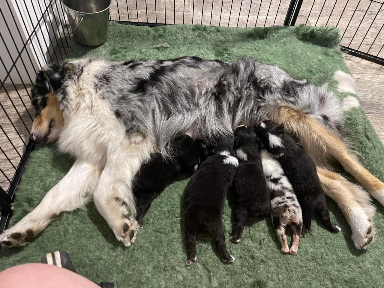 Nadešel čas vám představit vrh E 10.7.2023 se Cloe a Raykovi narodilo 5 princezen 4 holčičky Black tricolor a 1 Blue merle